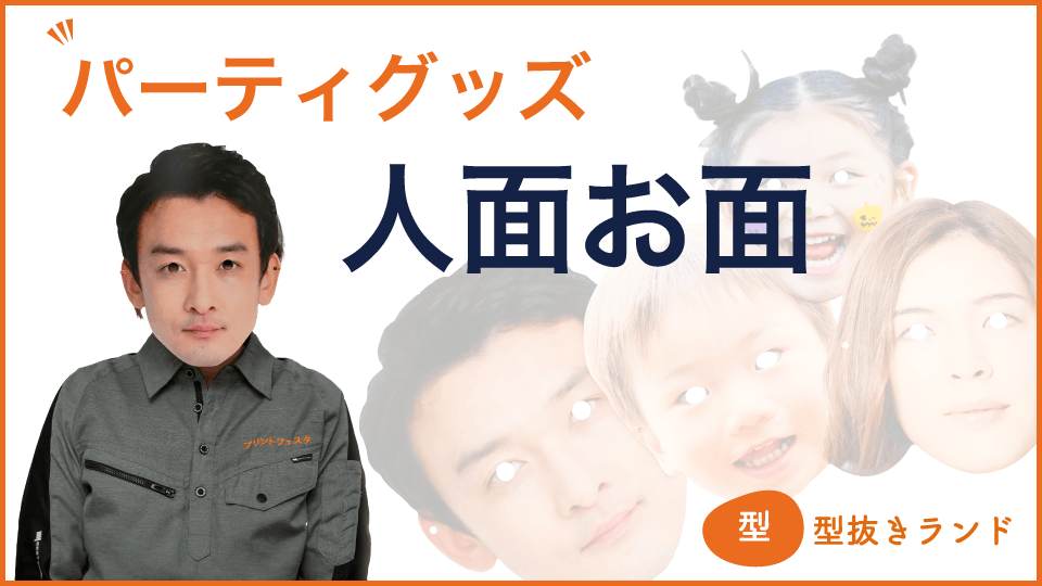 顔写真お面印刷は、誕生日パーティやハロウィンパーティ、 お祭りなどで、 家族や友人の写真、イラスト等をお面にして、楽しむための商品です。この機会にぜひ「型抜きランド」のお面印刷をご検討ください。少部数から大部数まで対応しております。変形サイズにも対応可能です。